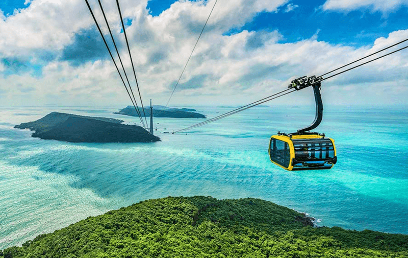2018年2月落成開放,跨海纜車的路線長達7899米長,共有69節車廂,每節車廂最多可載30人,最高速度為每秒8.5米,並採用最新的三索纜車技術,是目前登上金氏世界紀錄中最長的跨海纜車。連接安泰鎮和香島端,映入眼底的是360度的無敵海景;腳下是與世無爭的小漁村、美麗迷人的沙灘、漸層藍綠色大海、綠意盎然的小島嶼,海灣上漂浮著各式漁民賴以為生的小漁船,風光無限,彷彿一幅美麗的畫卷!不管是早晨還是黃昏,纜車上的視野都是欣賞南部小島最美的角度!