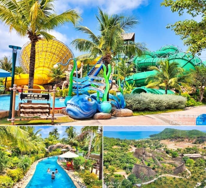 是東南亞最大的水上樂園,擁有超過20款來自全球頂尖設計的現代化設施,島上處處可見以神秘荒島和野生原住民為主題的奇幻場景與生動的海洋神話融為一體,共規劃6 區極具吸引力的主題園區,其中有5座園區適用全年齡層,非常適合家族旅遊或好友成群一起玩樂。園區內還有附設有休閒餐廳、咖啡廳、遊樂園、水上樂園和各種刺激的水上活動(香蕉船、水上摩托車、拖曳傘、獨木舟、瘋狂沙發、海上氣墊樂園...等),園區也聘請來自各國的樂團、演奏家、街頭藝人不定時的在每個角落展開藝術表演,也讓你的假期時光更精彩,來富國島的你千萬不要錯過。