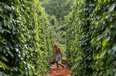 富國島也是越南出口胡椒主要產地,供應全球大量的胡椒需求,只要踏進胡椒園,就能親身體驗到胡椒辛辣的香氣,收割期為每年2到7月,每年產量約400噸。胡椒園內高約2公尺胡椒樹整齊排列,加上成串結果綠色胡椒,會讓人誤以為到了萄葡園。胡椒樹種植3年後才結果,之後可連續採收10年。摘下成熟綠色果實曝曬10天後,就成了黑色胡椒粒,另有紅色胡椒果,摘下後須先泡水10天,曬乾後去皮就是白胡椒,數量較少,價格較高。胡椒園四周會看到各種果樹,因為富國島的胡椒園很少用農藥,當地人利用果樹香氣吸引昆蟲,避免胡椒樹遭蟲害。